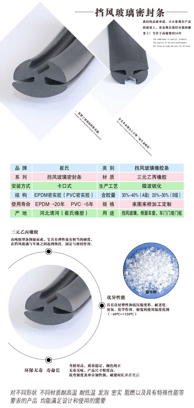 5 20年使用寿命,解决汽车密封条经常更换的麻烦。