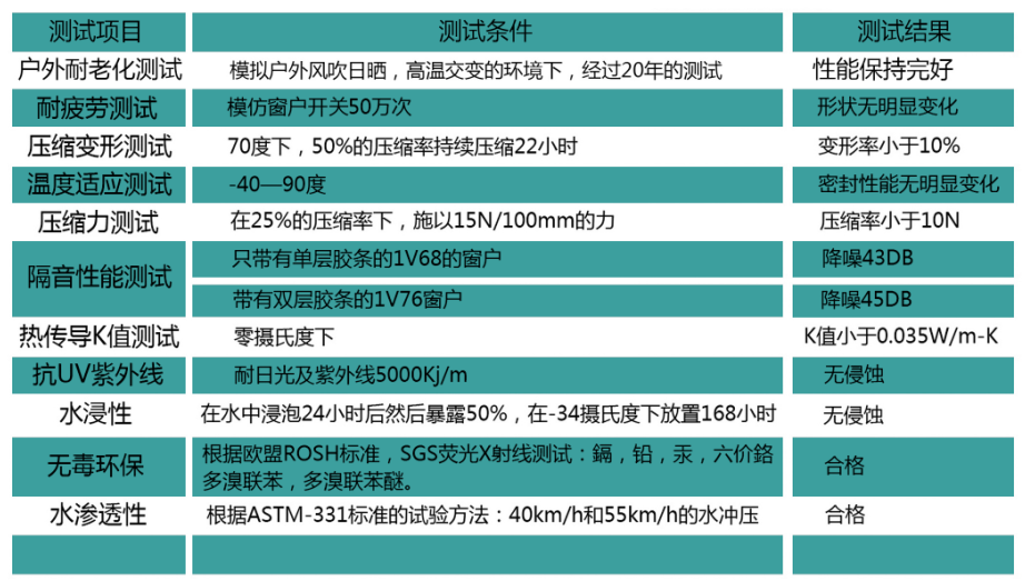 隔音降噪 使用变形小 使用寿命长 保护门窗 耐温度气候 居家安心 健康环保 人性化设计 安装便捷