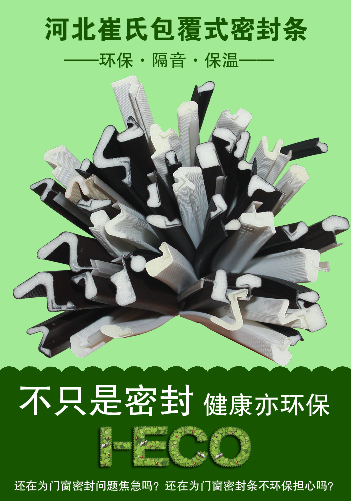 河北崔氏橡塑一直致力于解决环保密封及市场上各类门窗密封效果欠佳的问题,致力于从根本上消除现代家居的环保密封缺陷。基于多年从事门窗密封产品的专业经验以及对市场和客户需求的了解,崔氏橡塑引进德国先进的设备及技术,与德国密封技术行业专家共同研发推出了性能更加优越安装更加方便,使用更加节能、环保的高级新型密封条——包覆式密封条。该产品采用多重复合共挤,密封性、耐用性、环保性、美观性等性能已超越以往所有传统密封条。