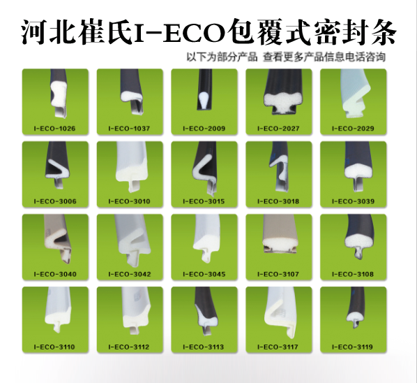 I-ECO包覆式密封条由四种质地优良的材料复合而成的产品,外层包裹PE膜,为包覆式密封条提供了最基本的质量保障,而且美观大方,是现代家居门窗绝好伴侣;好清洗,热固性芯,主要成分为PU,也就是包覆式密封条主要材料,具有超强的可塑性,内部的PP骨架以及塑料与橡胶完美结合的TPU鱼刺倒钩设计(安装容易,拔出难)和粘力超强的双面胶带(好粘贴)的分类应用进一步完善了包覆式密封条。