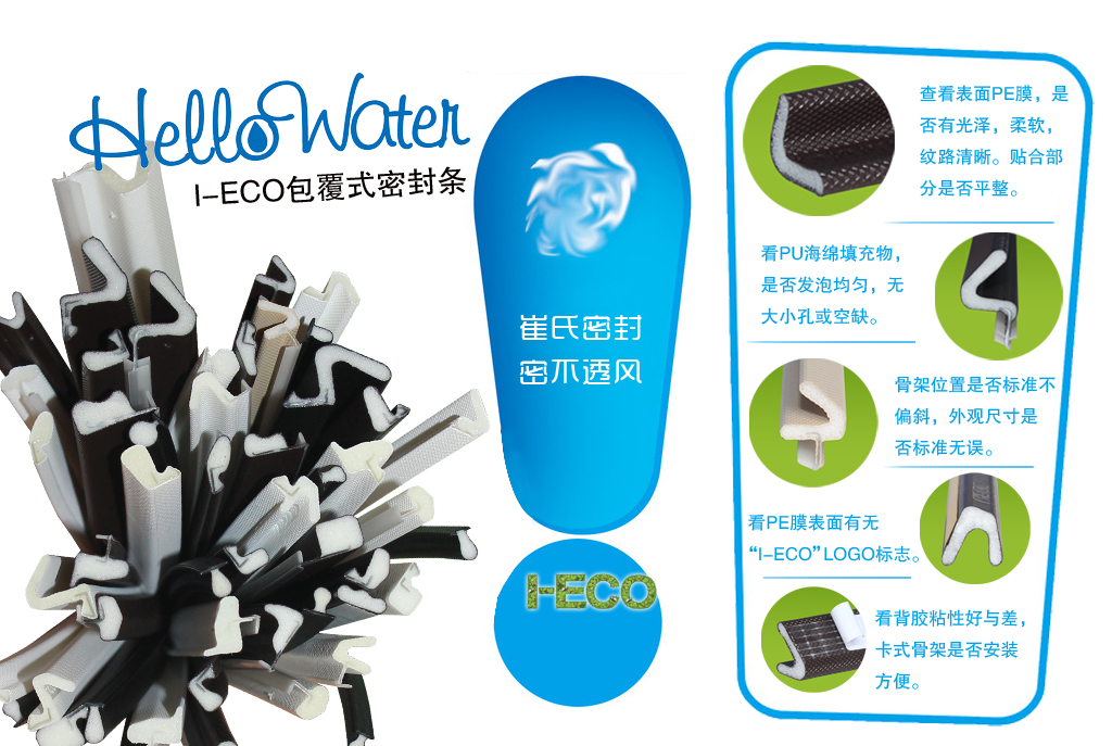 河北崔氏橡塑制品科技有限公司综合传统密封条的弊端研制出新一代包覆式密封条是由高回弹PU(聚氨酯)发泡料、外包覆PE(聚乙烯)膜、<内有PP(聚丙烯)支撑骨架>组成;高回弹PU发泡料具有超高的回弹性,低于10%以下的压缩变形,有效的保证了门窗长期的密封性;外包覆PE膜大大延长了产品的使用寿命、丰富的颜色选择使得外观华丽新颖;PP支撑骨架起到产品的安装固定、有效防止产品收缩。本实用新型具有:无毒环保、隔音降噪、20年超长使用寿命、保温节能、-40℃至90℃的超宽环境使用范围、通过50万次的疲劳试验,产品卓越的物理性能在长期使用过程中,保持门窗的密封性能。