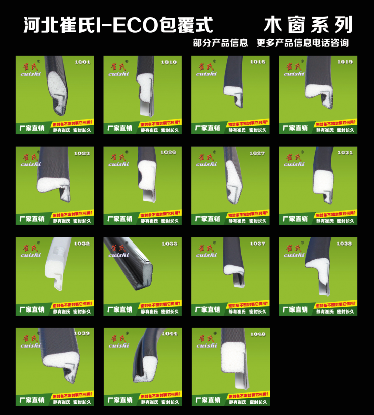 目前密封性能好的密封就属I-ECO包覆式密封条他是由高回弹PU(聚氨酯)发泡料、外包覆PE(聚乙烯)膜、<内有PP(聚丙烯)支撑骨架>组成;高回弹PU发泡料具有超高的回弹性,低于10%以下的压缩变形,有效的保证了门窗长期的密封性;外包覆PE膜大大延长了产品的使用寿命、丰富的颜色选择使得外观华丽新颖;PP支撑骨架起到产品的安装固定、有效防止产品收缩。本实用新型具有:无毒环保、隔音降噪、20年超长使用寿命、保温节能、-40℃至90℃的超宽环境使用范围、通过50万次的疲劳试验,产品卓越的物理性能在长期使用过程中,保持门窗的密封性能。